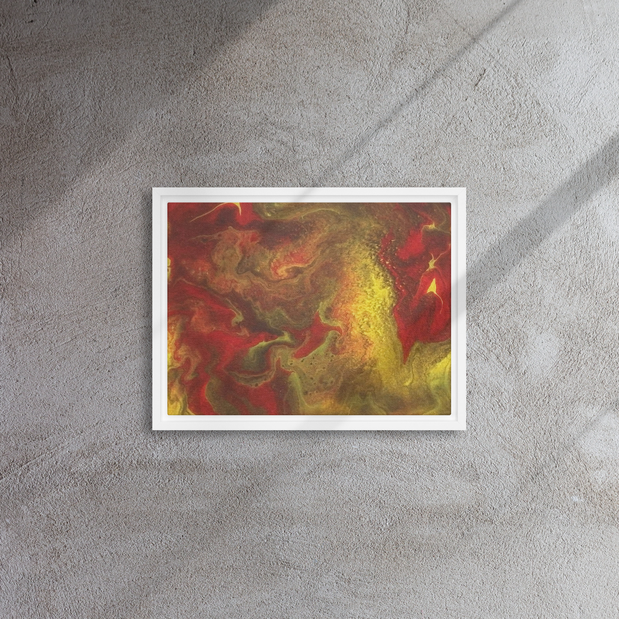 – The framed canvases with brown and black frames have a black inside around the canvas, and the canvases with white frames have a white inside around the canvas.