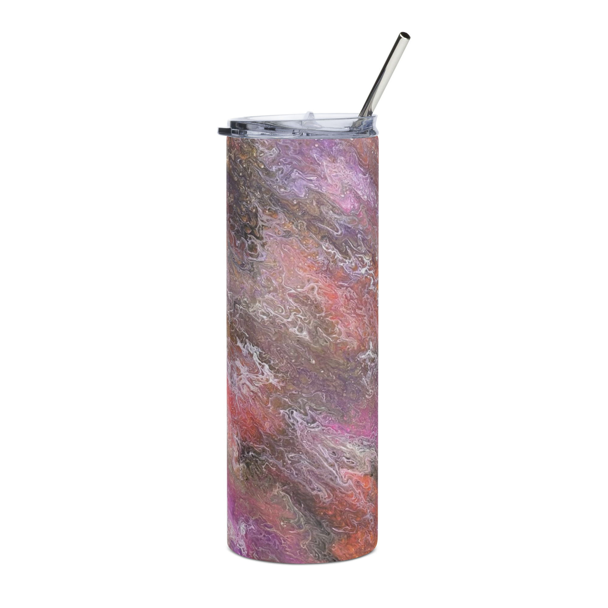 Enjoy hot or cold drinks on the go with this stylish stainless steel tumbler! This reusable tumbler with a metal straw is a perfect combo for hot or cold drinks at any time of the day.