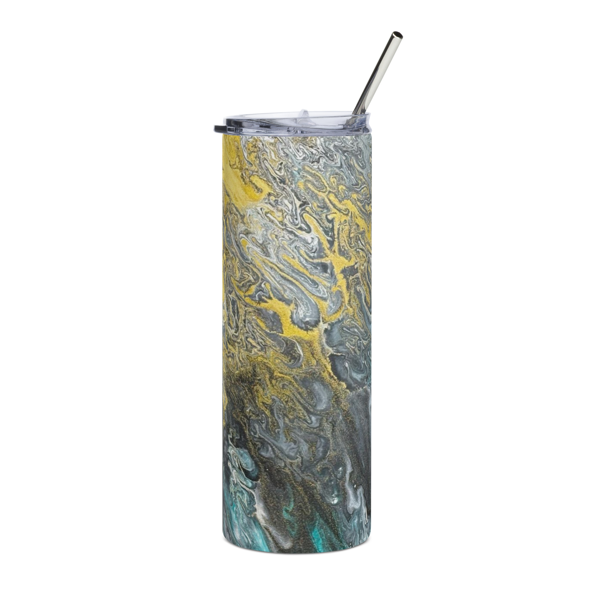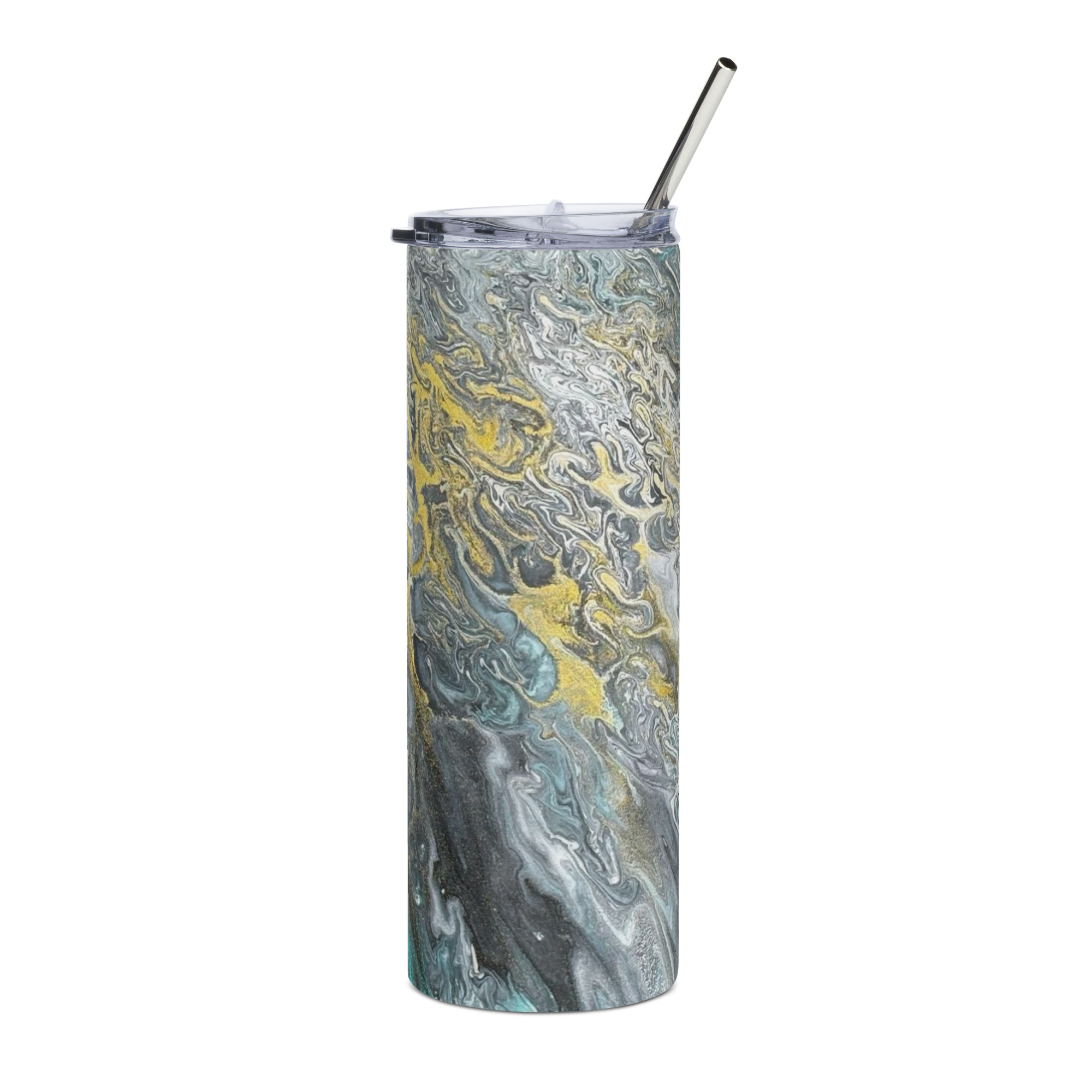 Enjoy hot or cold drinks on the go with this stylish stainless steel tumbler! This reusable tumbler with a metal straw is a perfect combo for hot or cold drinks at any time of the day.