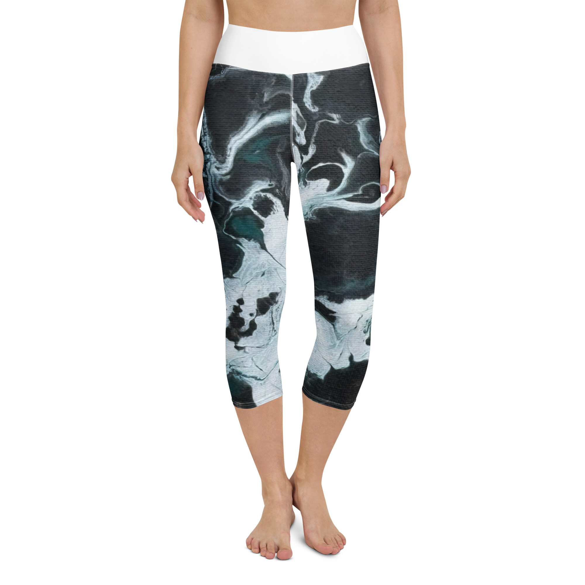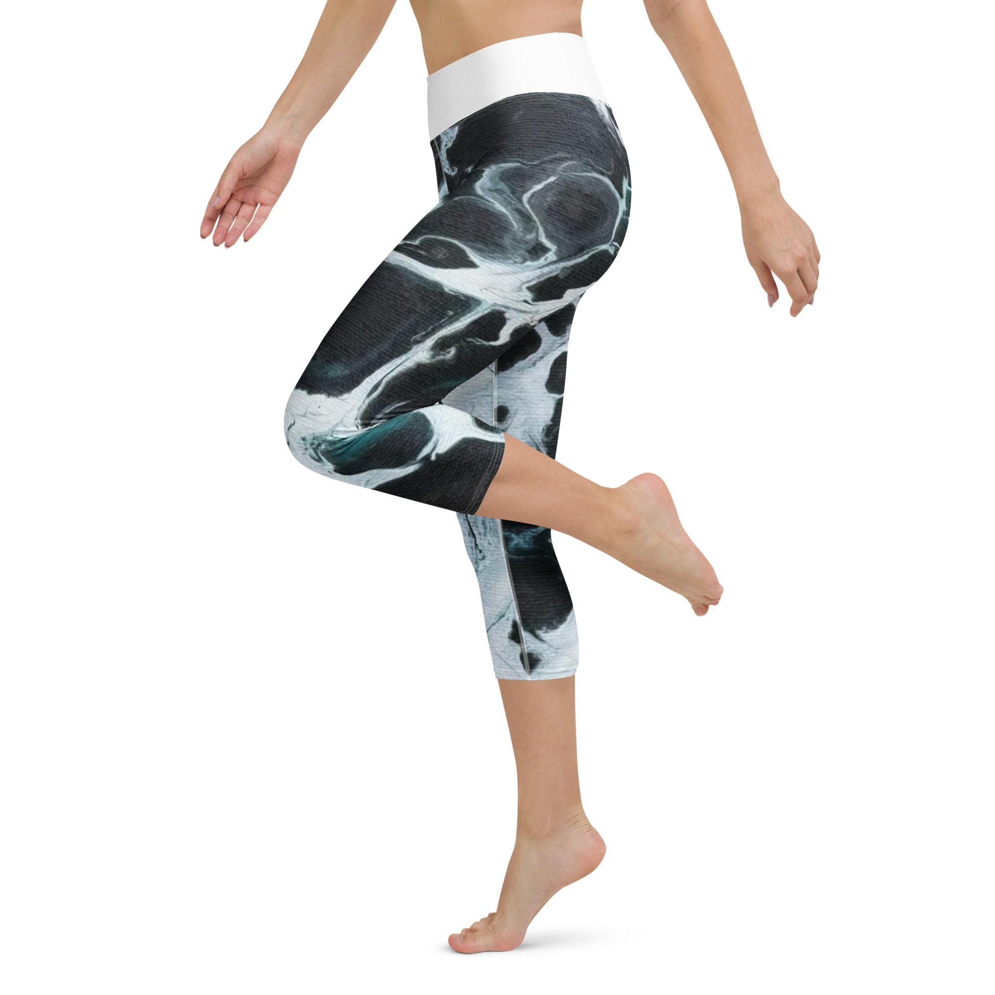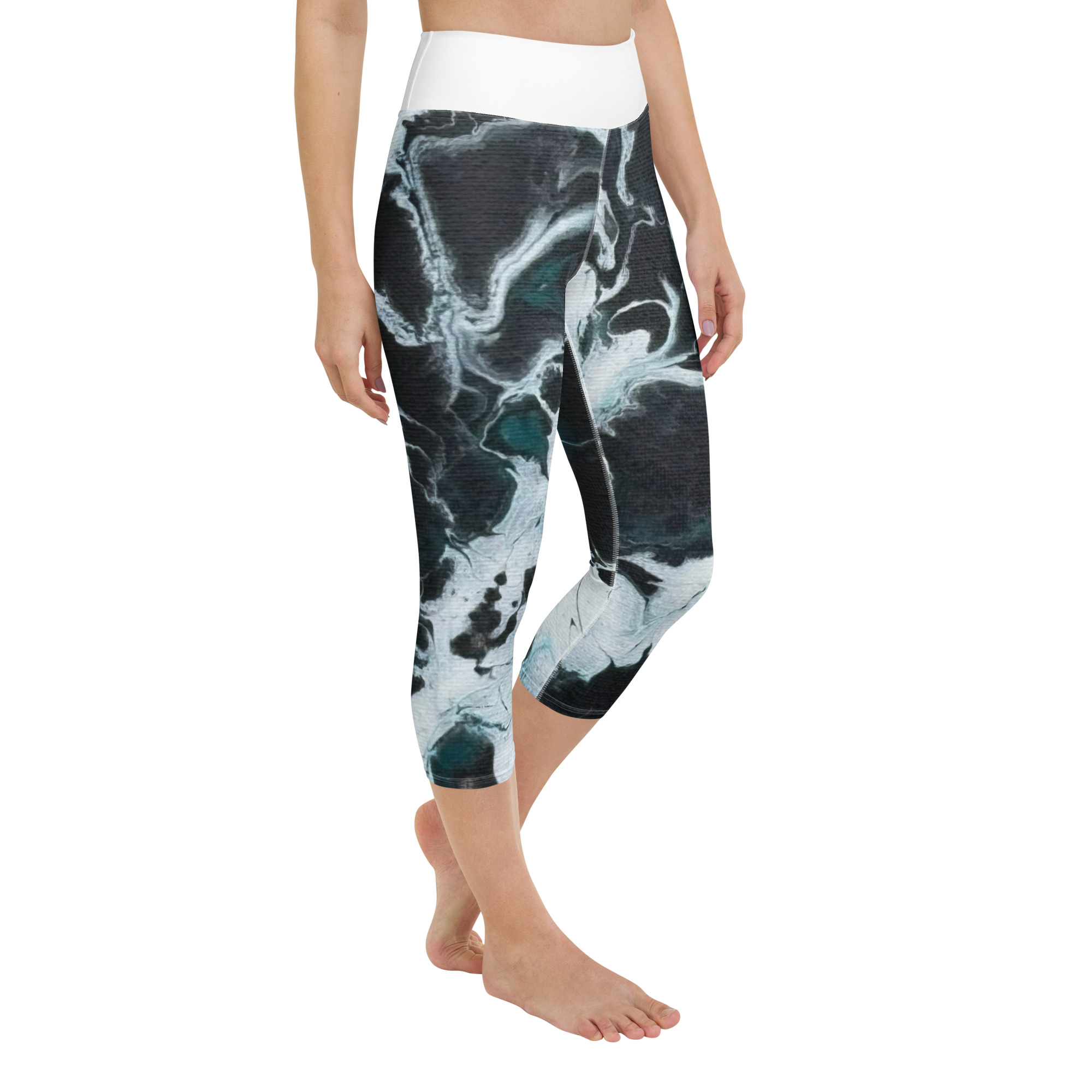 These yoga capri leggings with a high, elastic waistband are the perfect choice for yoga, the gym, or simply a comfortable evening at home.