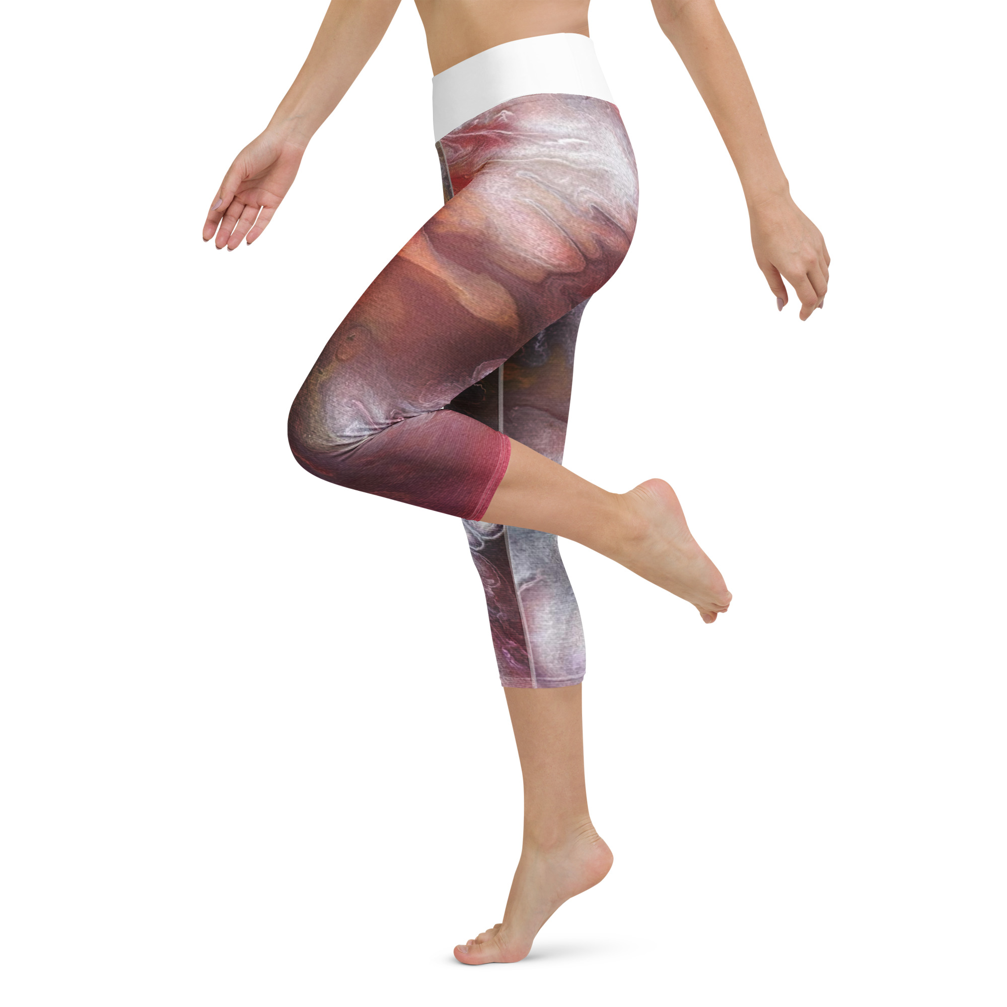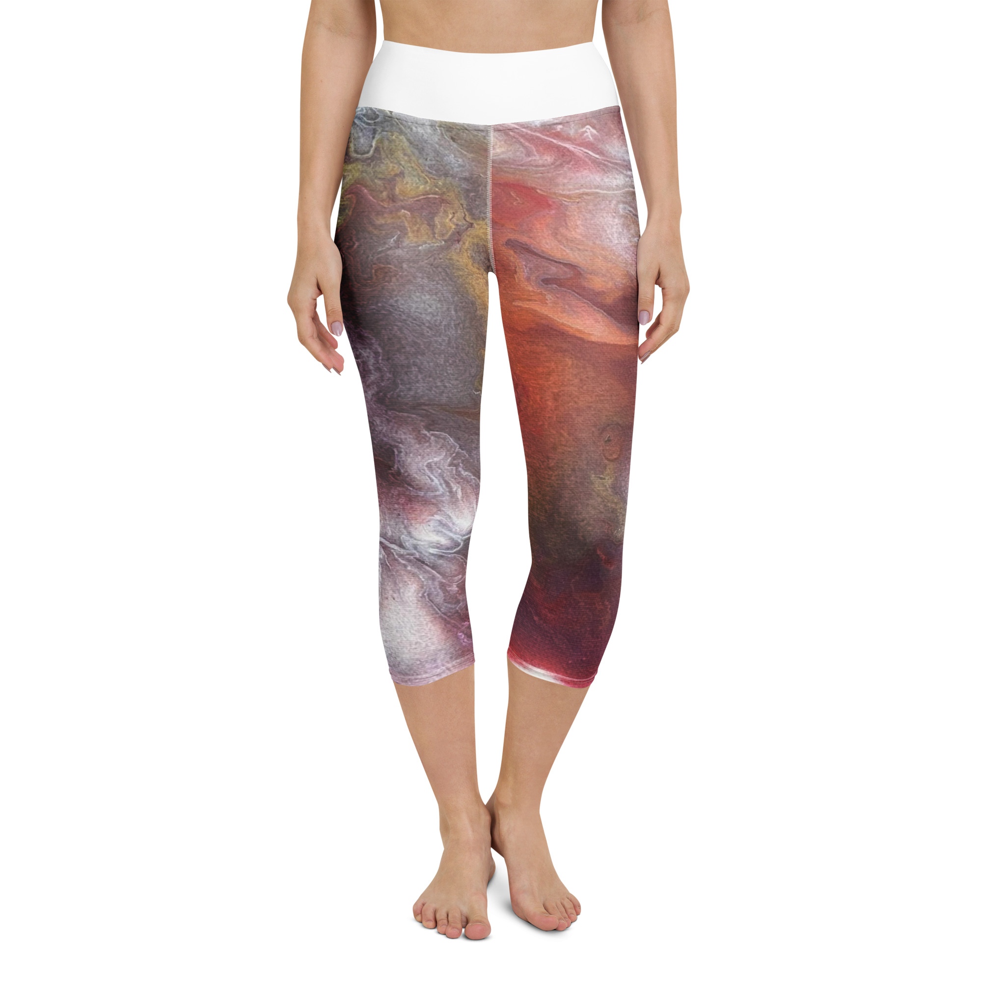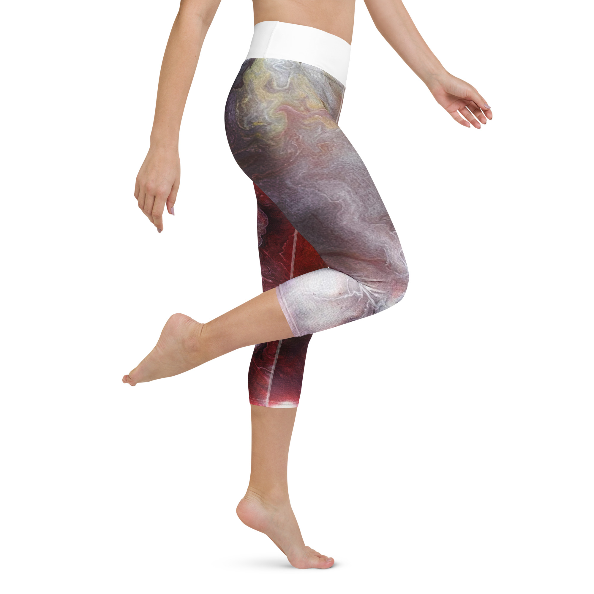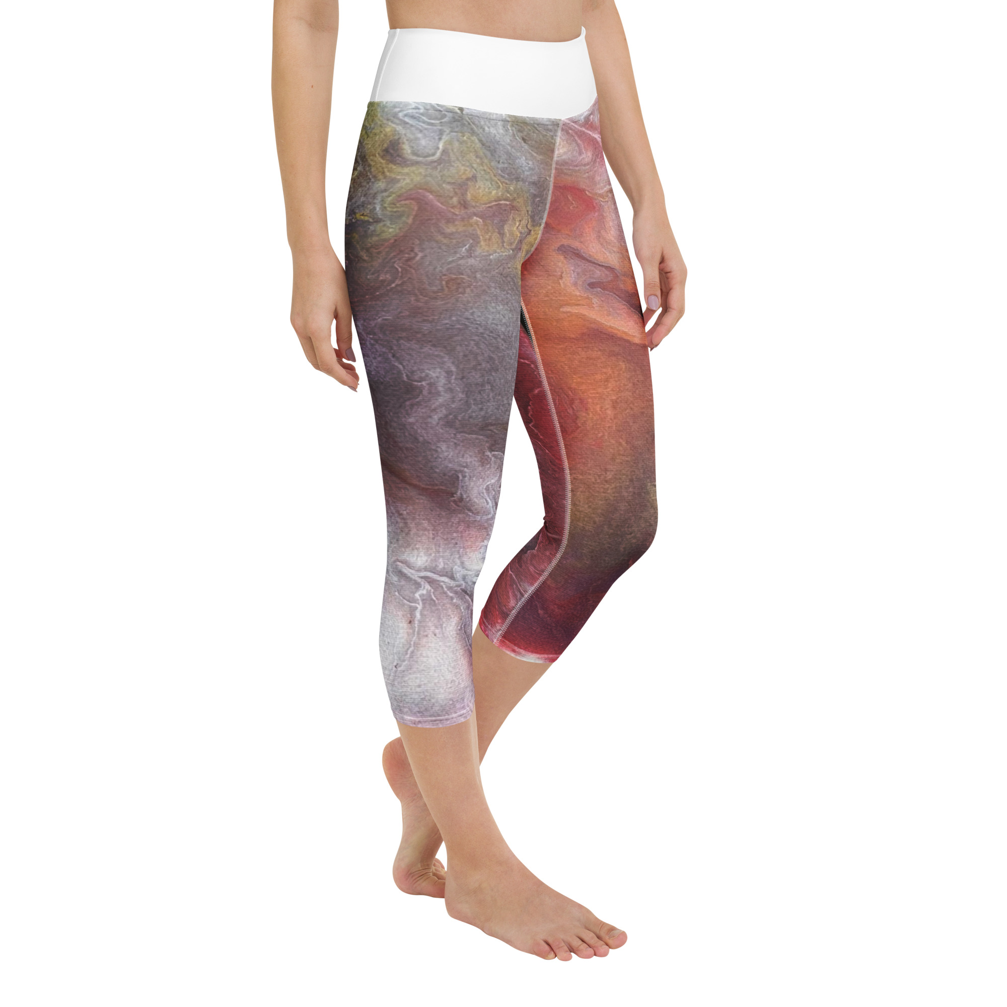 These yoga capri leggings with a high, elastic waistband are the perfect choice for yoga, the gym, or simply a comfortable evening at home.